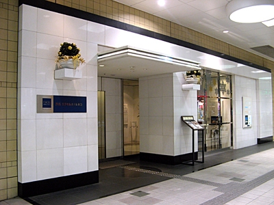 横断歩道を背にして、左手前方に渋谷エクセルホテル東急の1階エントランスがあります。(右手側に大きなエスカレーターがあります)