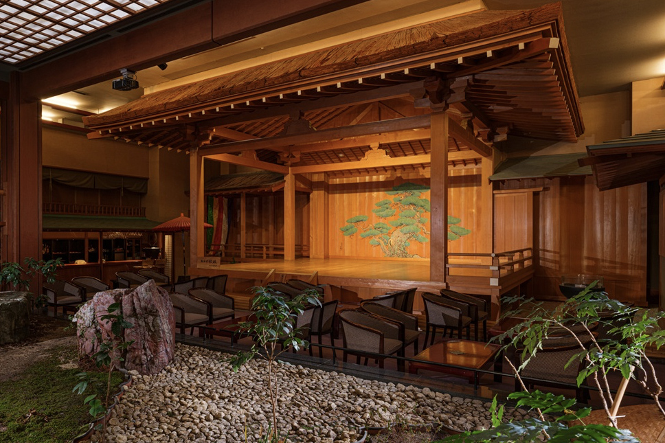 玄関を入ると、日本の旅館では珍しい 能舞台が出迎えます。