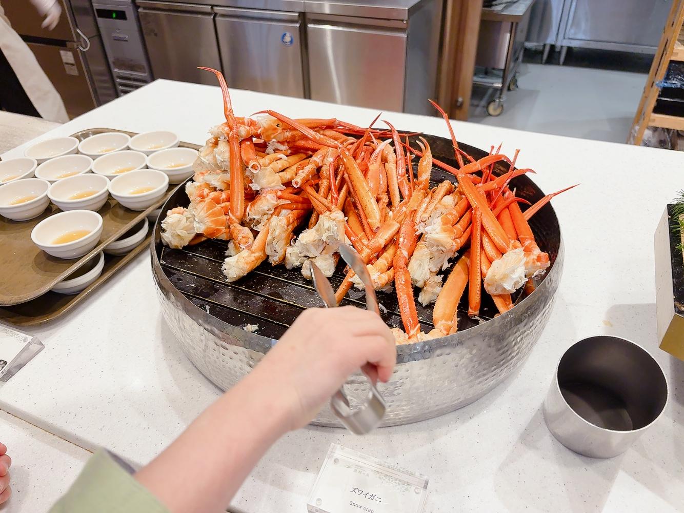 まずご飯のバイキングの品数にびっくり。フードコートにいるのかと錯覚してしまうほどです。カニも美味しかったし新鮮なお野菜や手の込んだお料理はどれも本格的で感動しました。