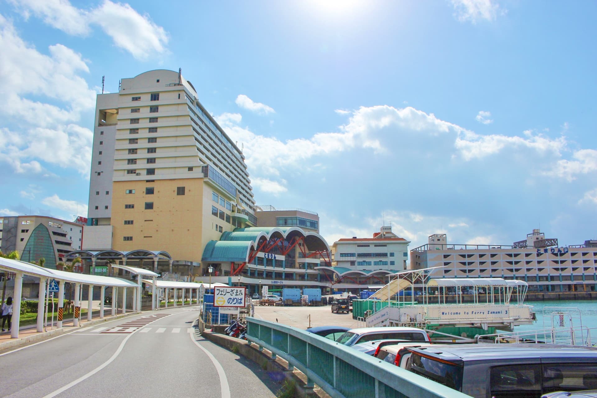とまりんとは、泊ふ頭にたつターミナルビルで、久米島やケラマ島など各離島のフェリーや高速船乗り場になっています。
